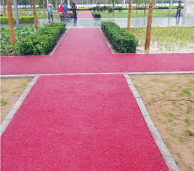 彩色透水地坪COLOR PERMEABLE FLOOR适用范围广泛适用于市政步道、园林小路、城市广场、高档住宅小区、停车场、商务办公大楼、户外运动场所(羽毛球场馆、篮球场馆等)。性能特点1.高透水性;2.高