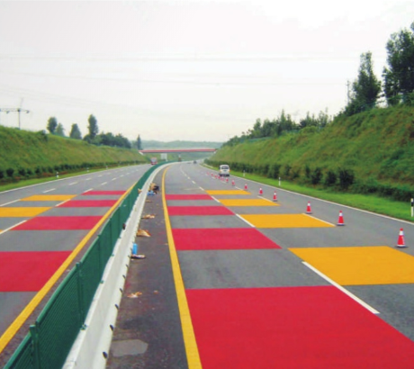 MMA彩色防滑路面MMA COLOR NON SLIP SURFACE适用范围公交车专用道、景观道路、旅游道路、人行道、自行车道、园区道路、小区道路、停车场等.性能特点1.具有良好的路用性能。高温稳定性、抗水损坏